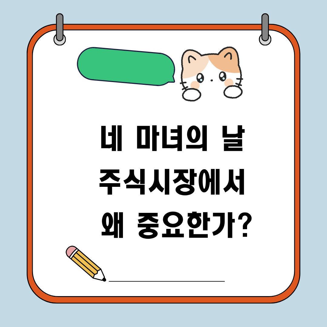 네 마녀의 날은 단순히 특별한 용어가 아니라, 실제로 시장에 큰 영향을 주는 중요한 이벤트입니다. 거래량과 변동성이 극대화되면서 많은 투자자들이 손익을 크게 경험하기도 하고, 동시에 위험에 노출되기도 합니다.