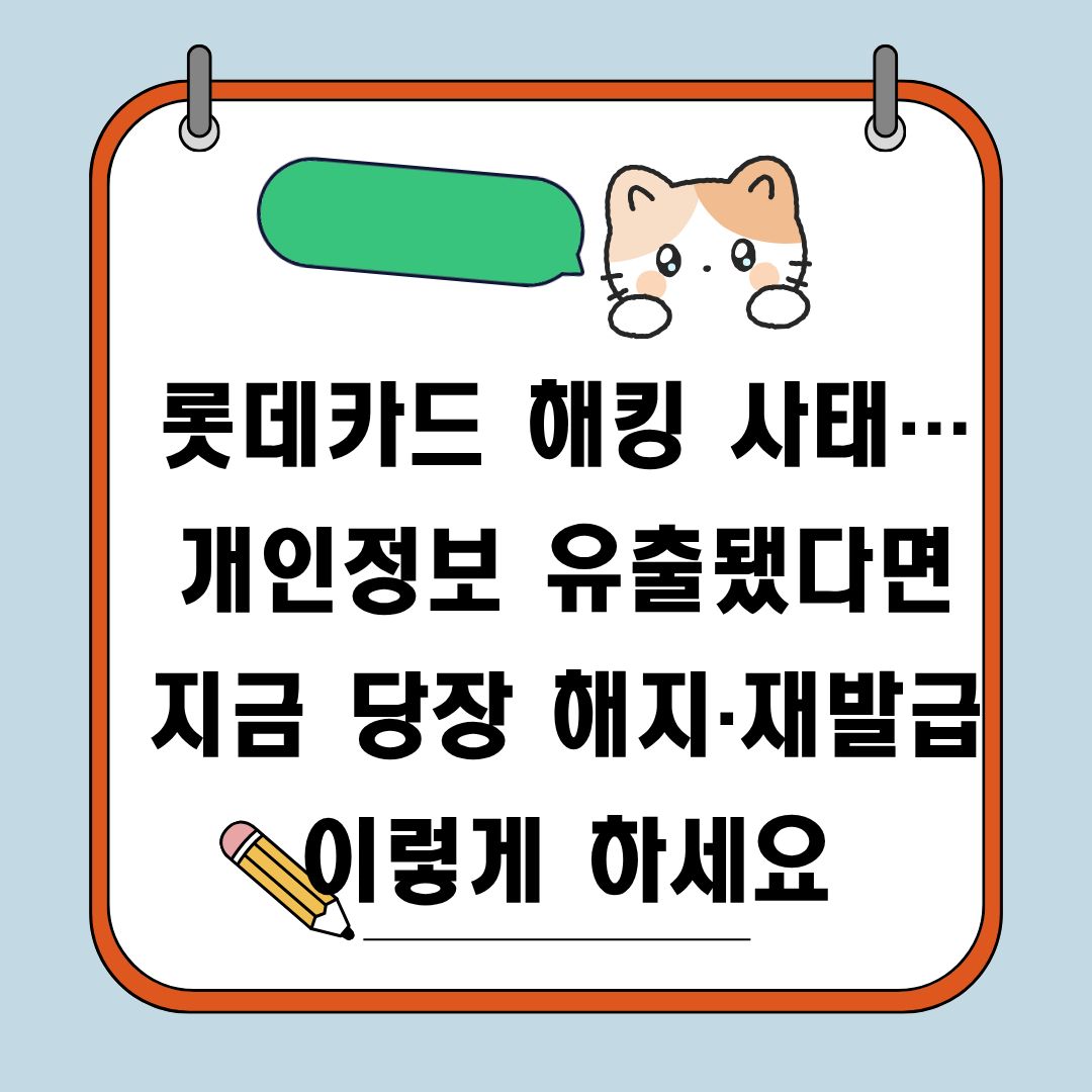 이번 롯데카드 해킹 사태는 단순한 정보 유출에 그치지 않고 실제 결제에 필요한 민감 정보까지 포함돼 있어, 사용자가 직접 조치를 취하는 것이 가장 안전합니다. 해지 또는 재발급은 고객센터 전화나 홈페이지·앱에서 간단히 신청할 수 있으니, 조금 번거롭더라도 미리 조치해두시는 걸 권장드려요.