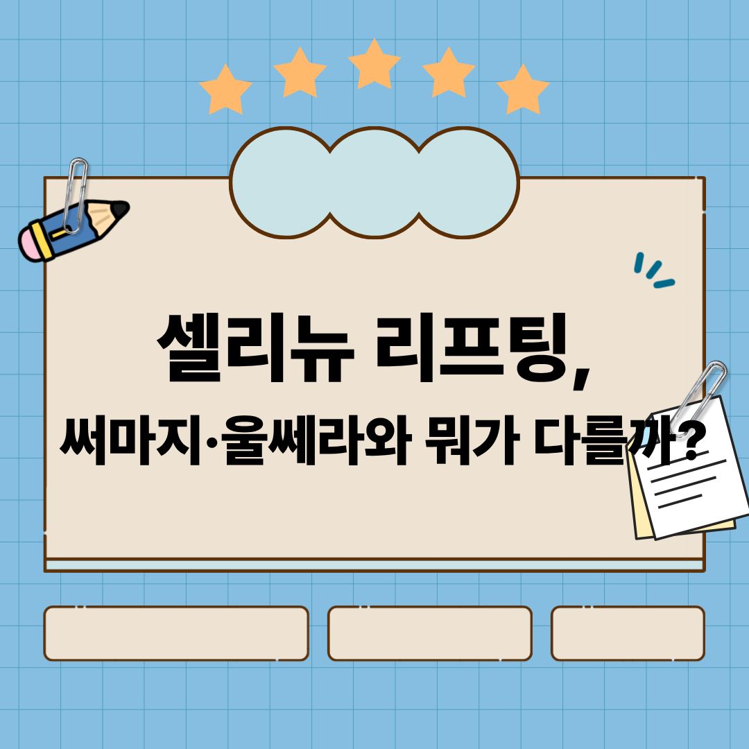 셀리뉴 리프팅, 써마지·울쎄라와 뭐가 다를까? (2025 최신)