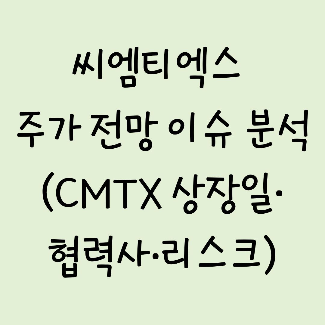 씨엠티엑스 주가 전망 이슈 분석 (CMTX 상장일·협력사·리스크)