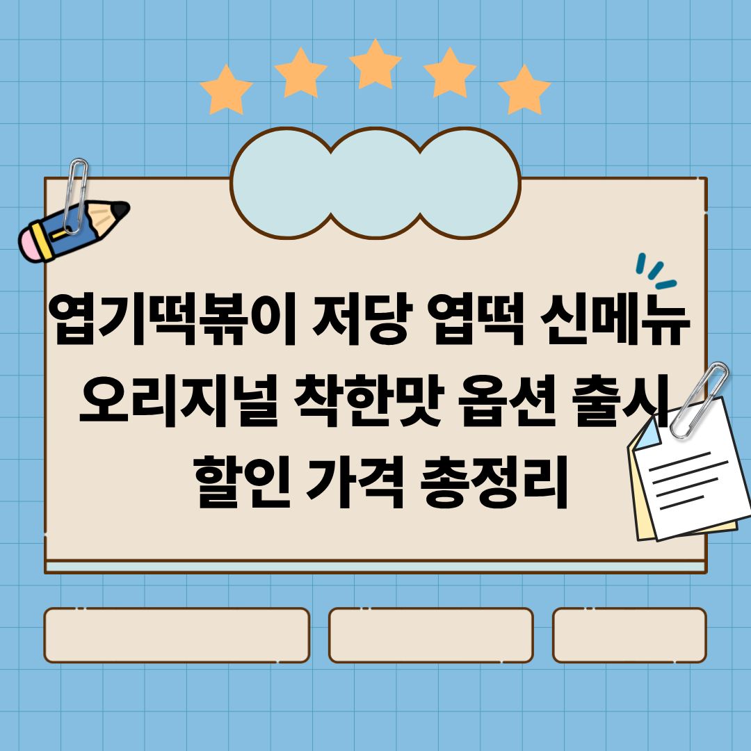 엽기떡볶이 신메뉴 ‘저당 엽떡’ 출시! 오리지널·착한맛 저당 옵션 및 혜택 총정리