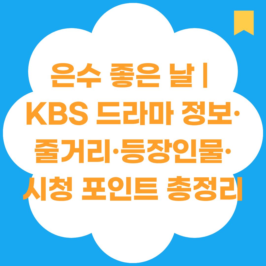 은수 좋은 날 | KBS 드라마 정보·줄거리·등장인물·시청 포인트 총정리