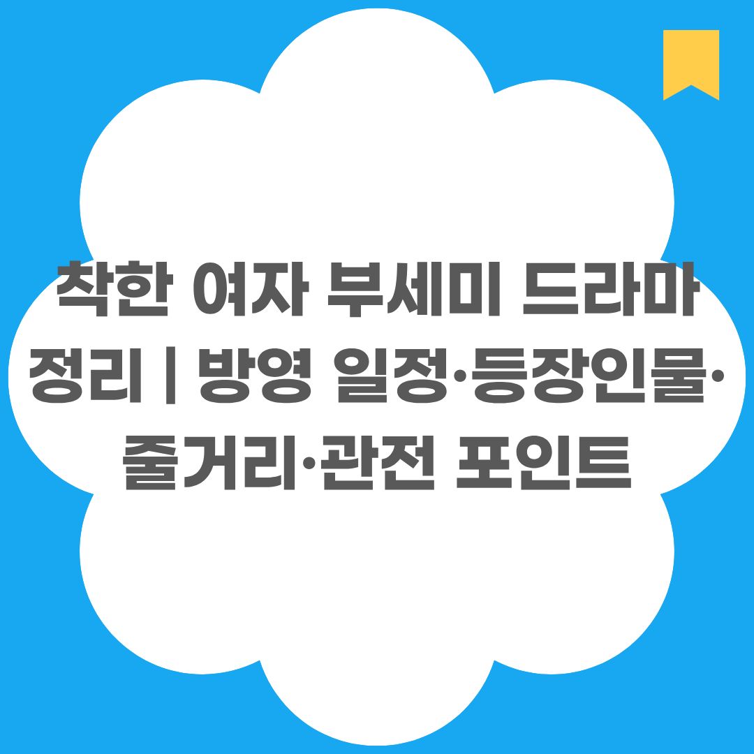 착한 여자 부세미 드라마 정리 | 방영 일정·등장인물·줄거리·관전 포인트