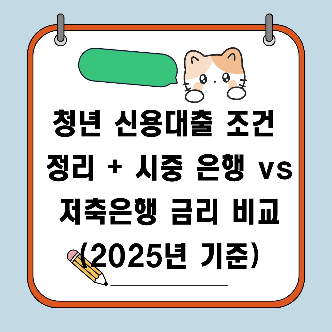 청년 신용대출 조건 정리 + 시중 은행 vs 저축은행 금리 비교 (2025년 기준)
