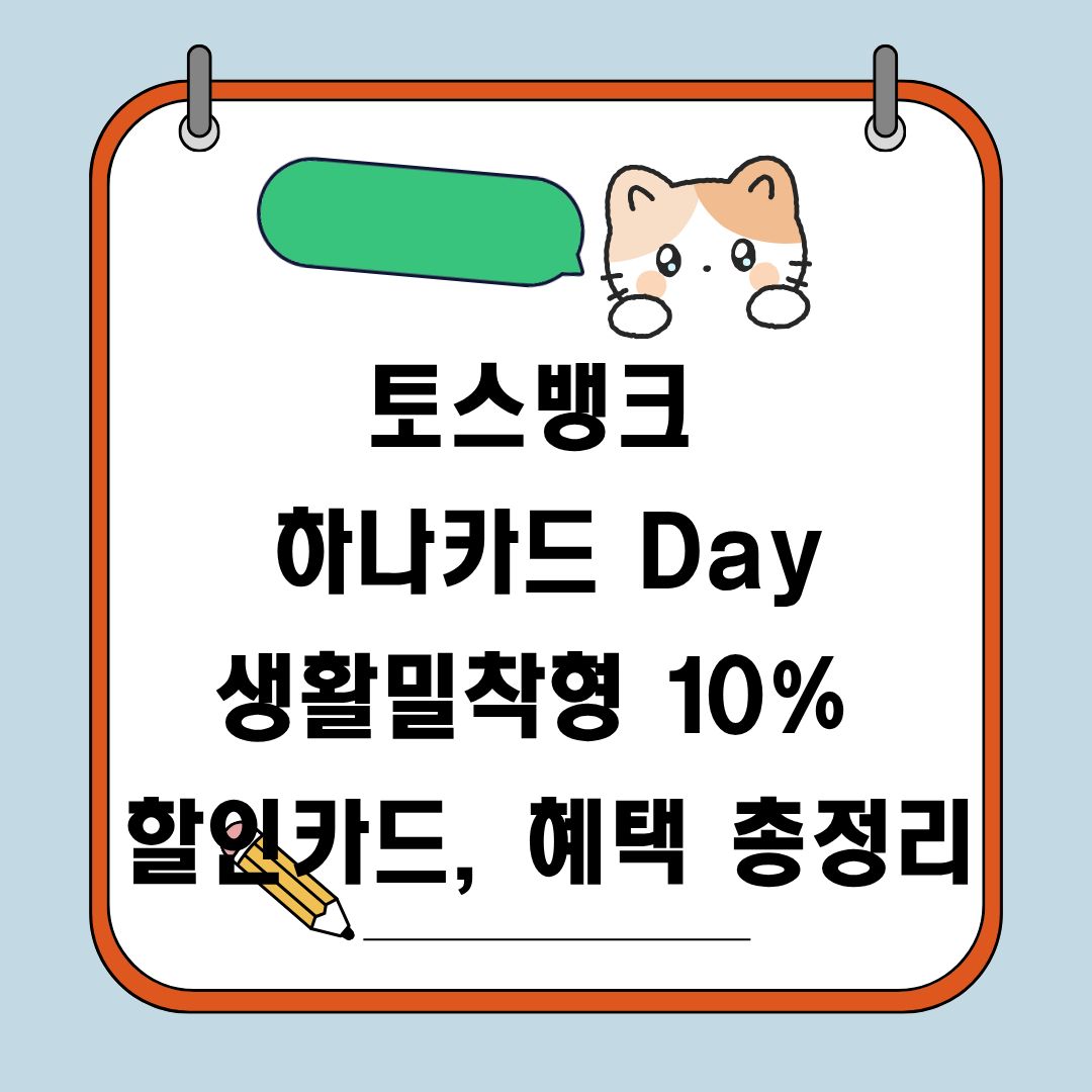 토스뱅크 하나카드 Day — 생활밀착형 10% 할인카드, 혜택 총정리