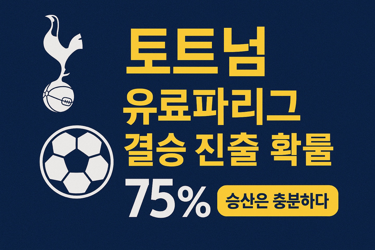 현재 유럽 축구 통계 사이트 FiveThirtyEight의 예측 모델에 따르면, 토트넘의 유로파리그 결승 진출 확률은 약 19~23%로 집계되고 있습니다. 이는 참가 팀 중 3~4위권에 해당하는 수치로, 현실적인 기대치를 보여줍니다.