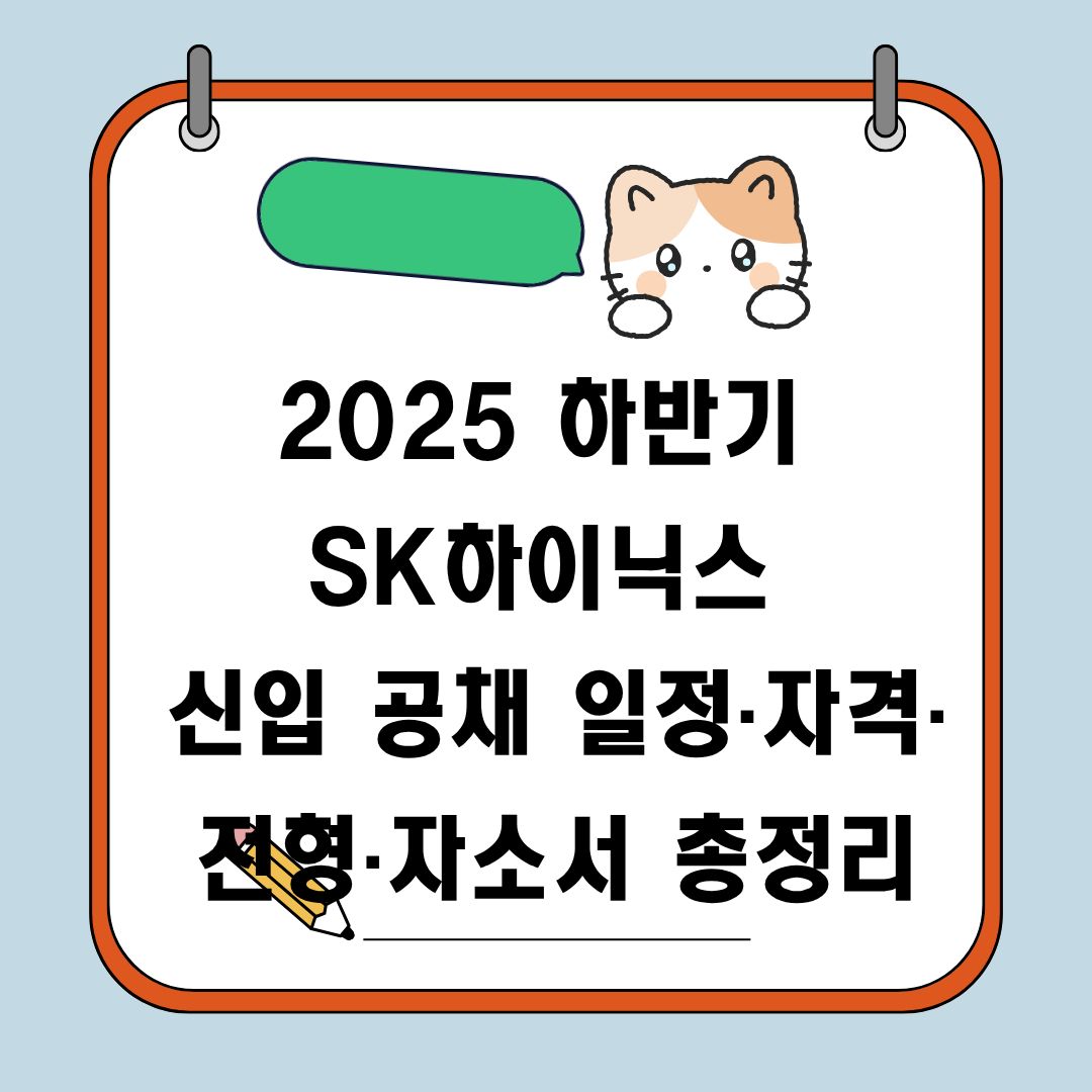 SK하이닉스가 2025년 하반기 신입사원 공채(수시채용)를 시작했습니다. 지원자격, 일정, 전형절차, 자소서 항목과 꿀팁까지 한눈에 정리해드릴게요 💛