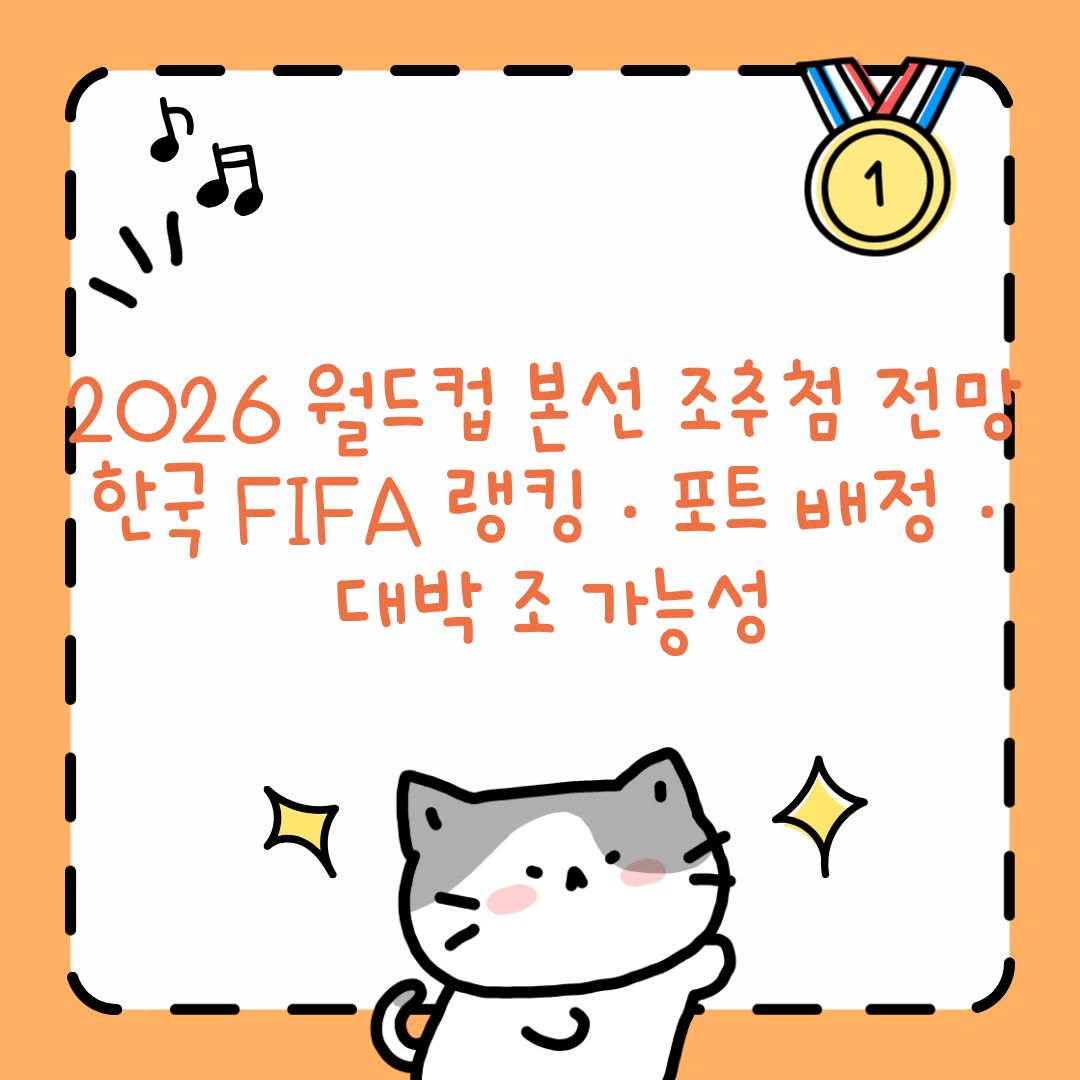 2026 월드컵 본선 조추첨은 2025년 12월 개최가 유력하며, 한국의 포트 배정은 11월 FIFA 랭킹 결과에 따라 결정될 예정입니다. 현재 22위권인 한국은 포트2 진입 가능성을 남겨두고 있으며, 남은 A매치 결과가 중요합니다. 조추첨 운도 중요하지만, 결국 랭킹 포인트를 높이는 것이 대박 조를 만들 수 있는 가장 현실적인 전략입니다.
