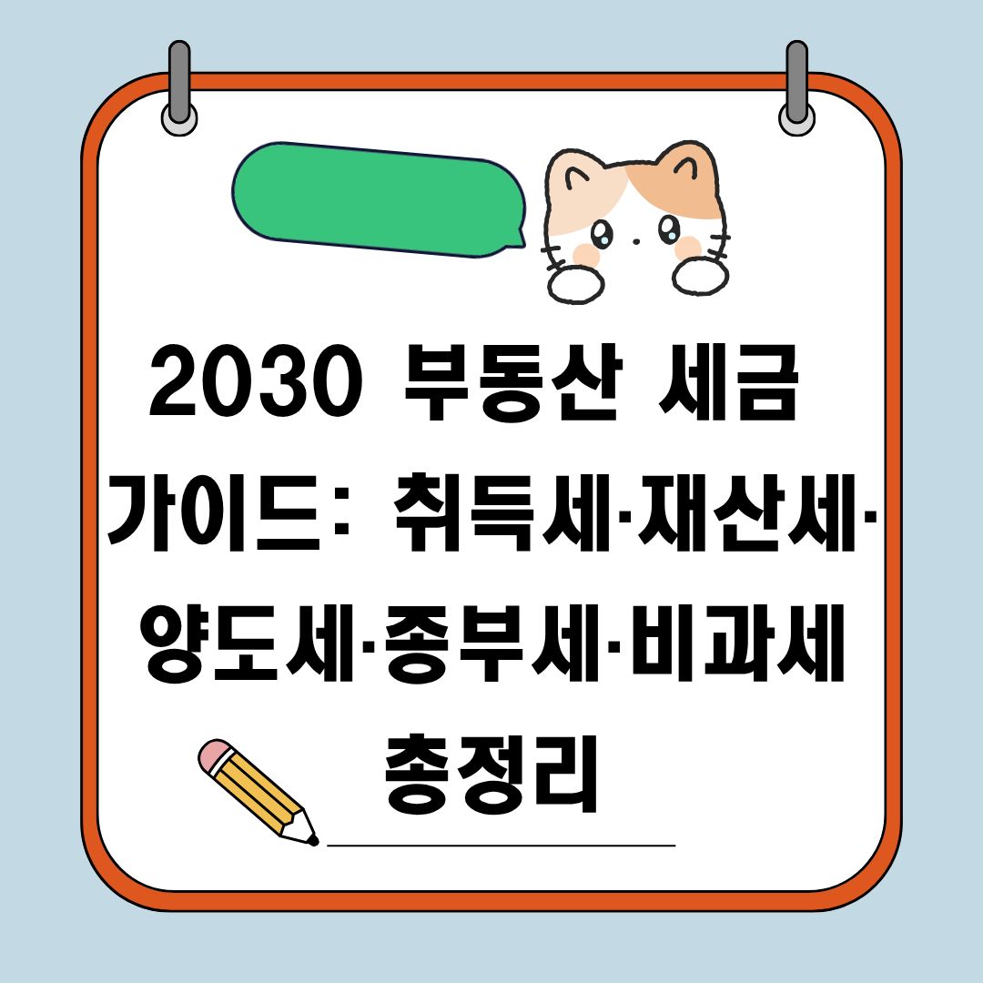 2030 부동산 세금 가이드: 취득세·재산세·양도세·종부세·비과세 총정리